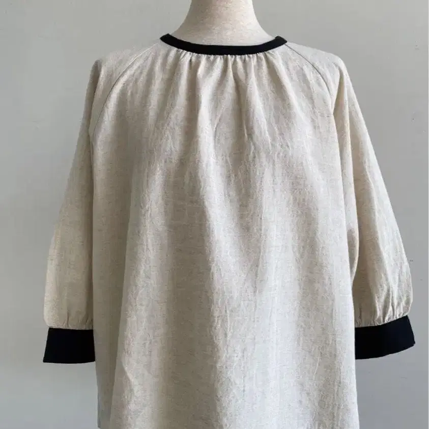 prit 코튼 린넨 평직 7부 볼륨 슬리브 클레릭 풀오버