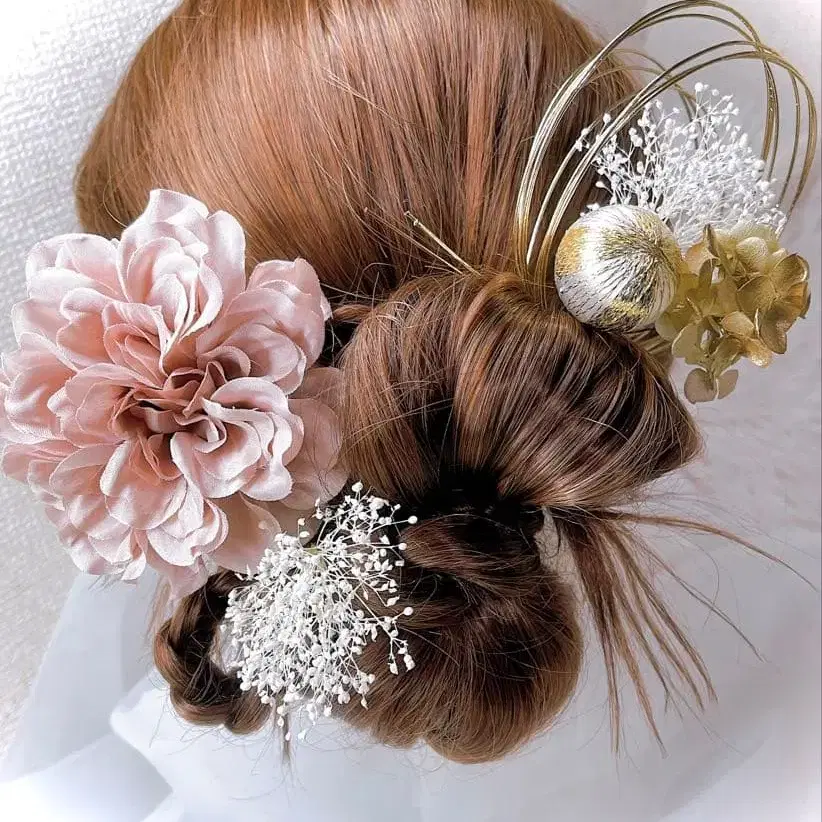성인식 결혼식 사전 촬영 하카마 일본 의류 머리 장식 더스티 핑크 금박