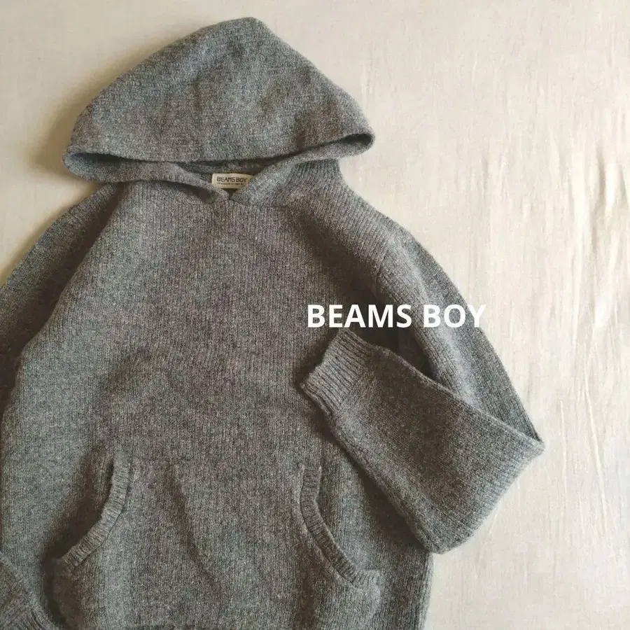 BEAMS BOY 후드 부착 그레이 울 니트 후드티