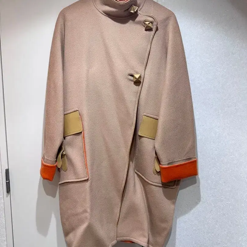 캐시미어 100% 베이지 오렌지 판초 케이프 코트