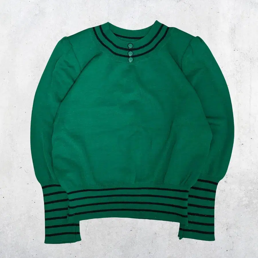 00s 빈티지 그린 스트라이프 긴팔 니트 스웨터 퍼프 슬리브