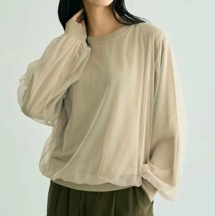 오버 튤 니트 라이트 베이지