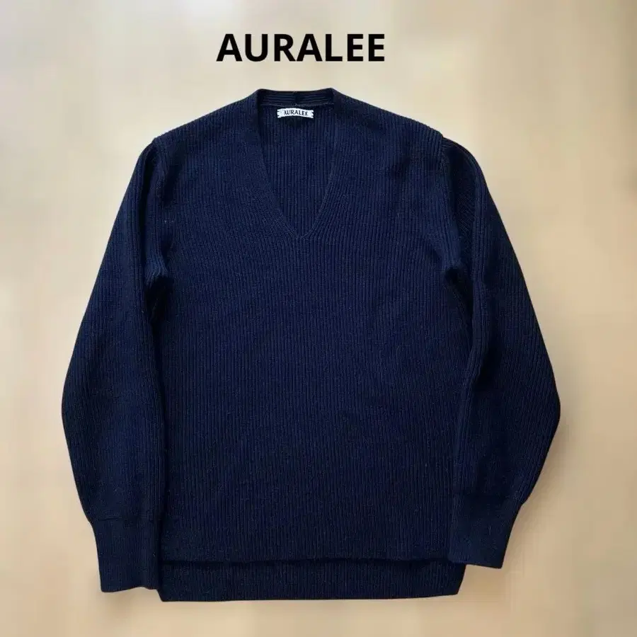 AURALEE 네이비 V넥 긴팔 스웨터