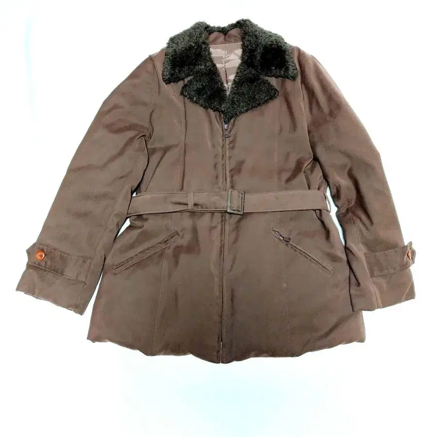 하프문 HALF MOON 다운 코트 브라운 퍼 옷깃 벨트 포함