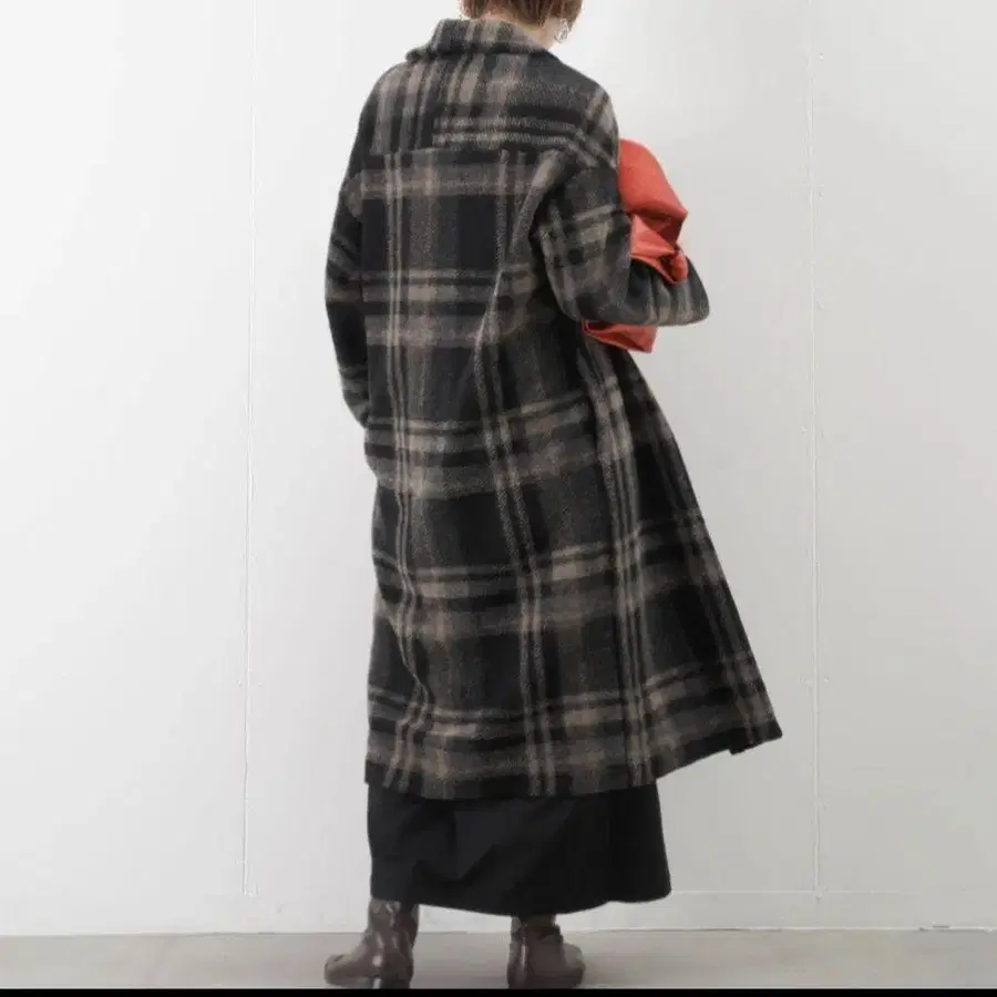 울 혼방 블랙 계열 체크 롱 코트