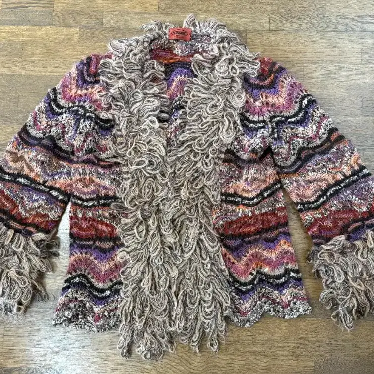 MISSONI 미쏘니 니트 가디건 프린지 옷깃 멀티 컬러 올 패턴