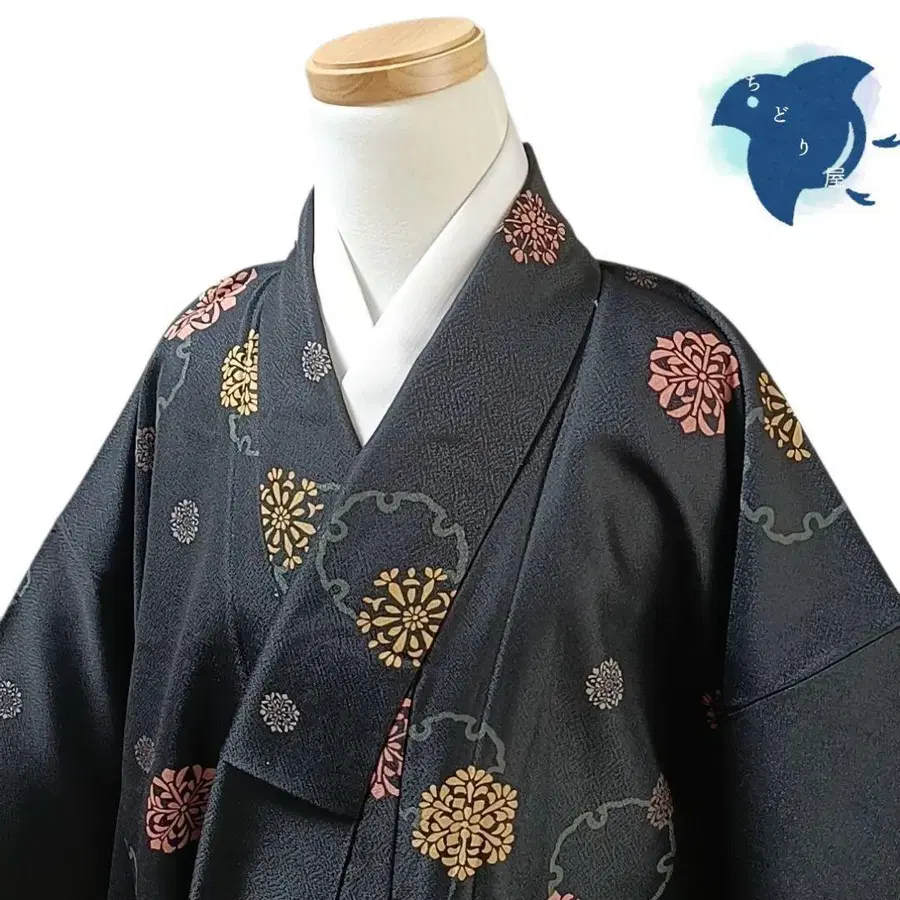 C35 치도리야 기모노 코몬 워셔블 기모노 화학 섬유 눈꽃 무늬 블랙