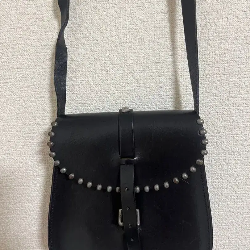 스터드 장식 블랙 가죽 숄더백