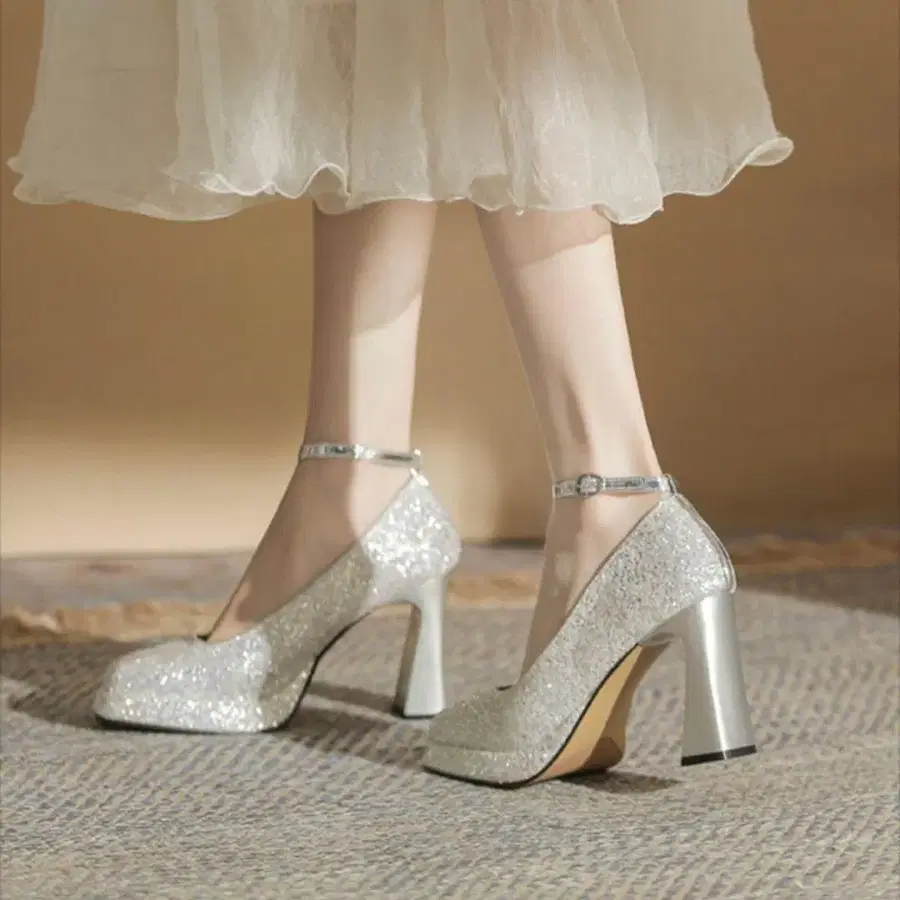 • COMEX 글리터 오픈토 하이힐 새상품급