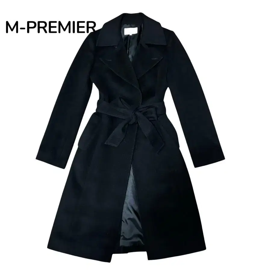새상품급 M-PREMIER 롱 코트 블랙 벨트 캐시미어 36