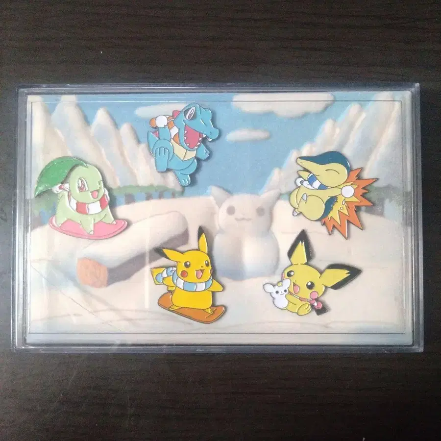 의 5종 핀즈 세트입니다. 목도리를 하고 있거나 눈놀이를 하고 있는 등 매우 귀여운 핀즈입니다. 배경 부분은 플로키 사양으로, 복슬복슬한 촉감입니다.