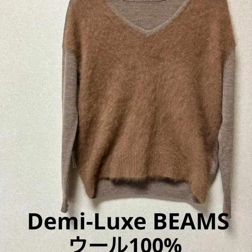 브라운 색상의 V넥 스웨터입니다. 울 100% 모헤어풍 소재와 리브 편직의 조합으로, 소매 부분은 리브로 되어 있습니다. 따뜻하고 스타일리시합니다. 사이즈 표기가 없어 프리 사이즈로 설정했지만, 평소 M 사이즈를 착용하시는 분께 적합합니다. 앞면은 모헤어로 되어 있어 따뜻하고 가볍습니다.