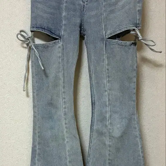 리젝시 컷 아웃 리본 데님 팬츠