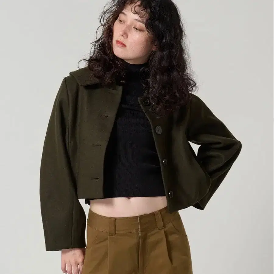 빅 칼라 숏코트 카키 TINA:JOJUN 티나 조준
