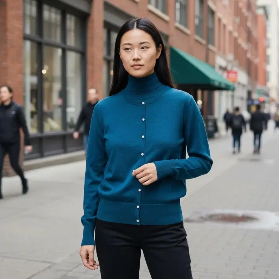 쿠미쿄쿠 M 터콰이즈 앙상블 터틀넥 니트 가디건
