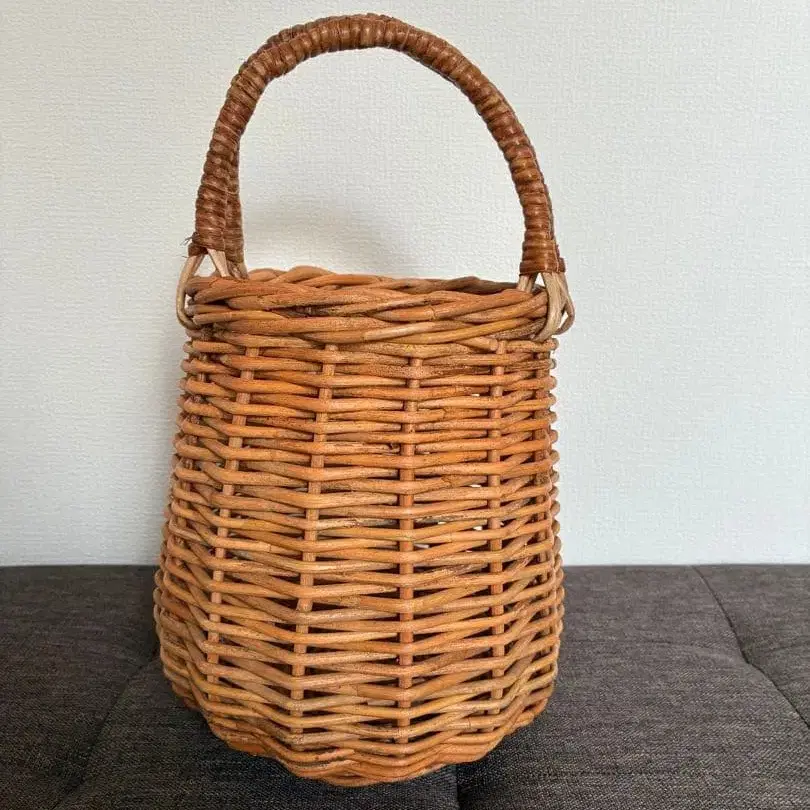천연 소재 원형 바스켓 핸들 포함 바스켓백