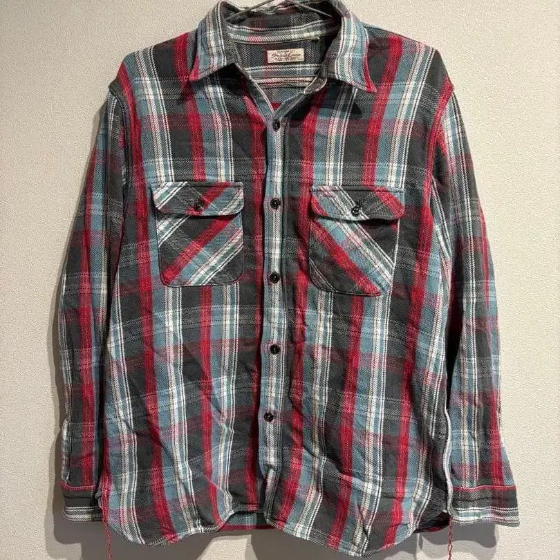 Sugar Cane 체크 무늬 긴팔 플란넬 셔츠