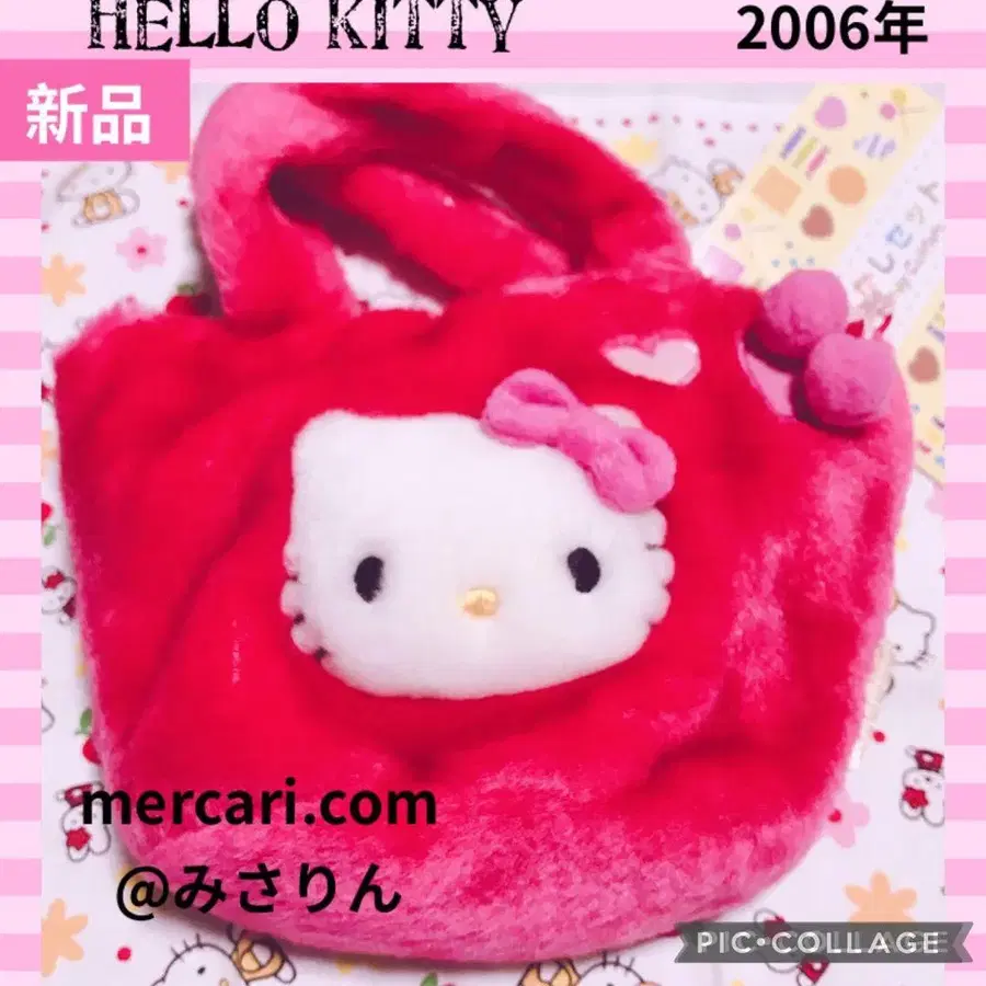 미사용 헬로키티 봉제 인형 백 2006년 크리스마스 파우치 퍼
