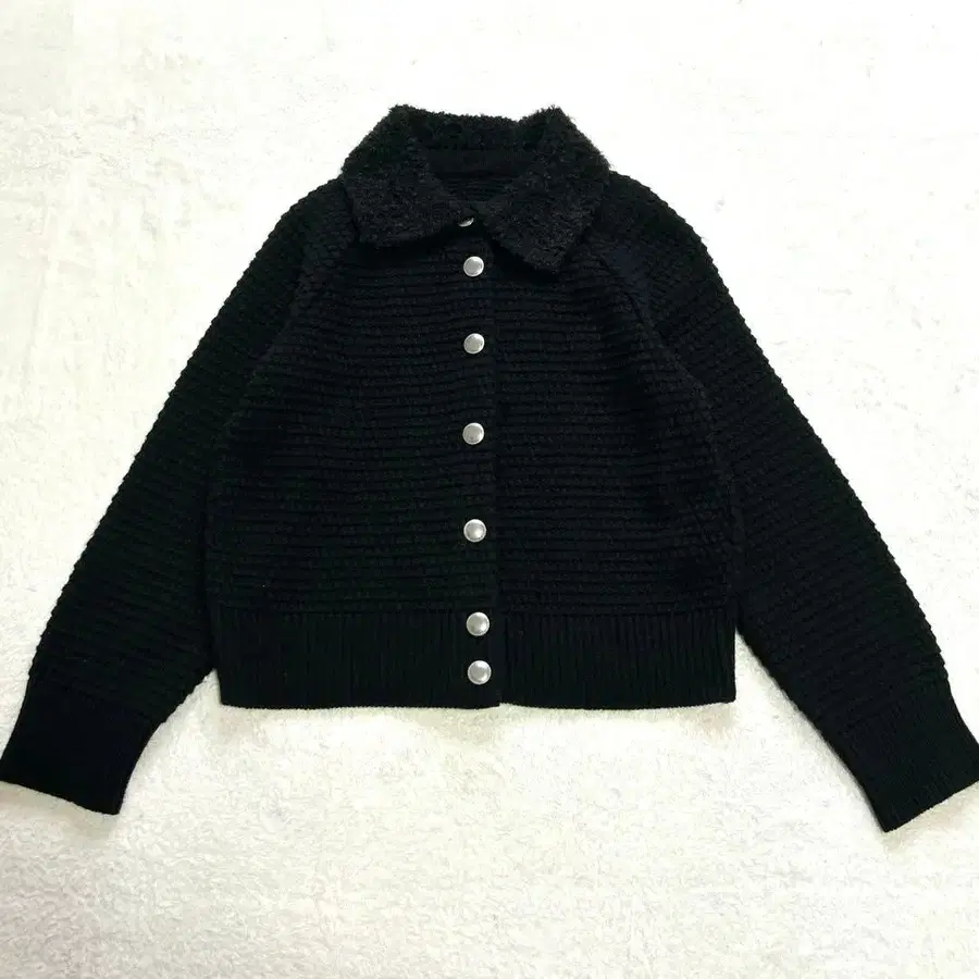 입체감 있는 니트 소재에, 프론트의 실버 컬러 버튼이 고급스러운 악센트가 되어줍니다.