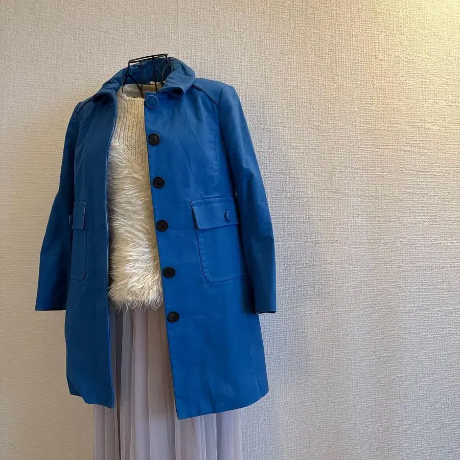 100% 코튼의 파란색 자켓 코트