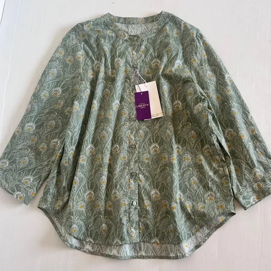 새상품 택 포함 ALPHA CUBIC 리버티 밴드 카라 셔츠 긴팔 그린