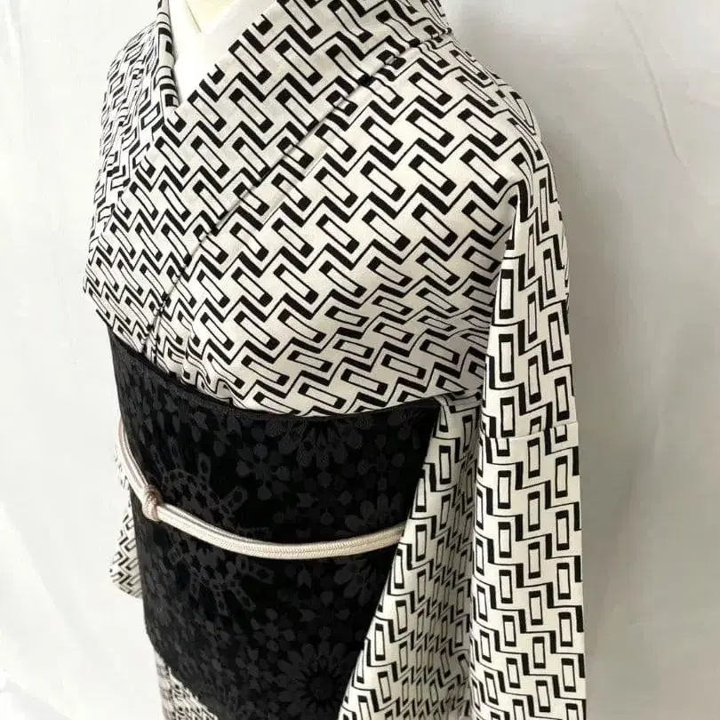 미사용 새상품 순수 실크 이중 기모노 기하학 멋스러운 코몬 단품
