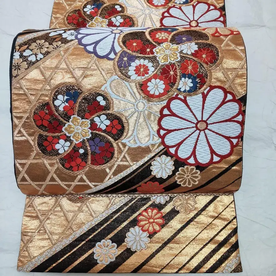 순수 실크 카고메 봄/가을 꽃 짜임 후쿠로 오비 (905)