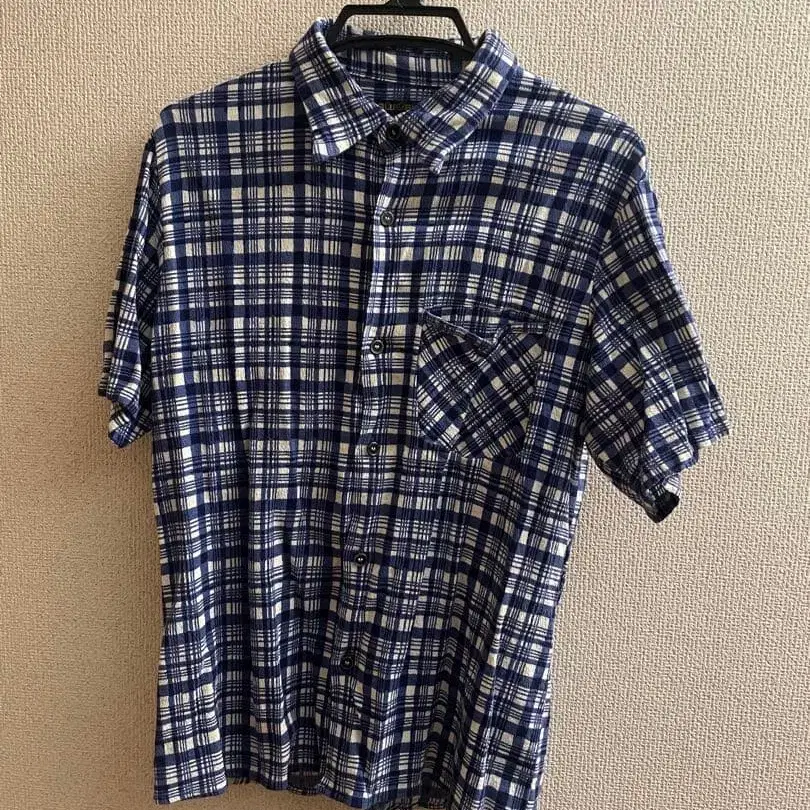 BLUE/BLUE 반팔 셔츠 파랑과 화이트 체크 무늬