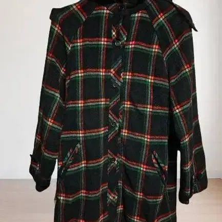 체크 무늬 후드 부착 롱 코트 자켓 일본 제품