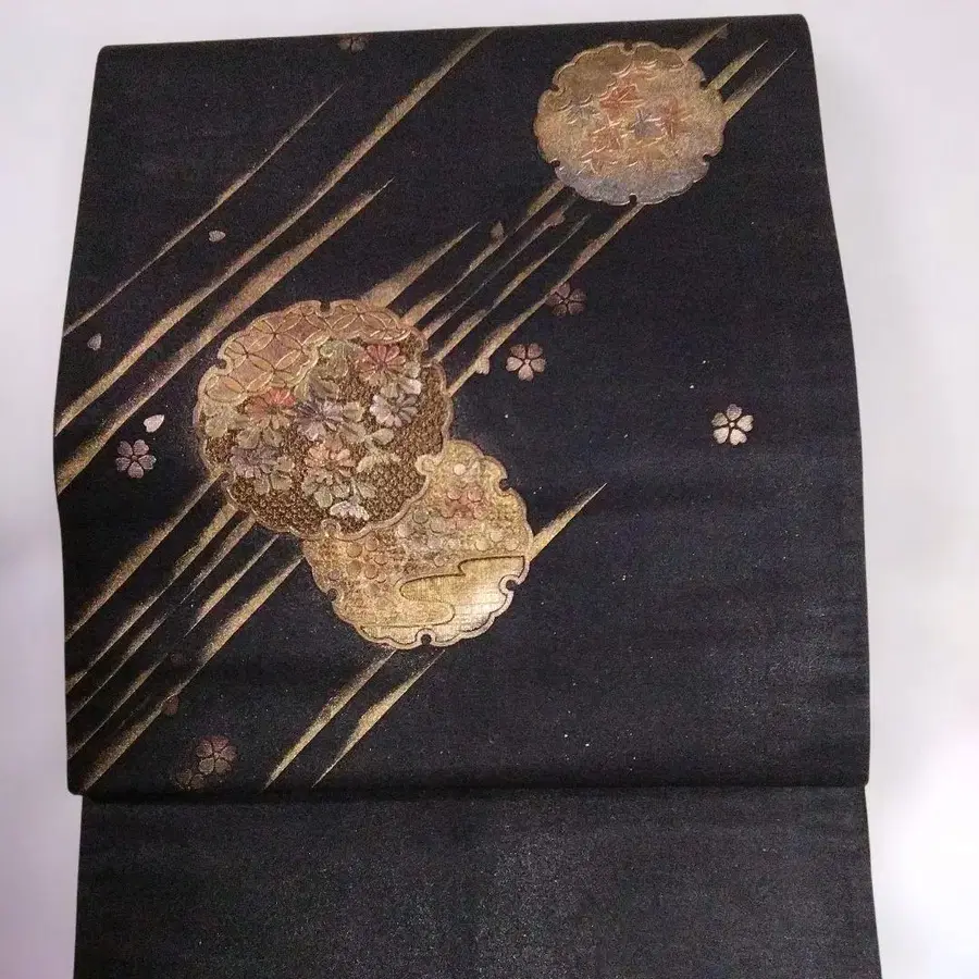 블랙 베이스 금박 꽃무늬 포인트 패턴, 후쿠로 오비