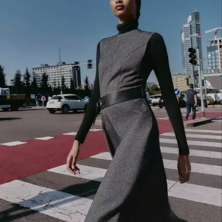 ZARA: 벨트 자카드 미디 원피스 (XL)
