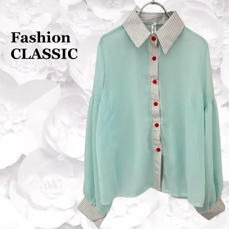 [패션 클래식] 시어 셔츠 블라우스 [F] 스카이블루 버튼 바이컬러