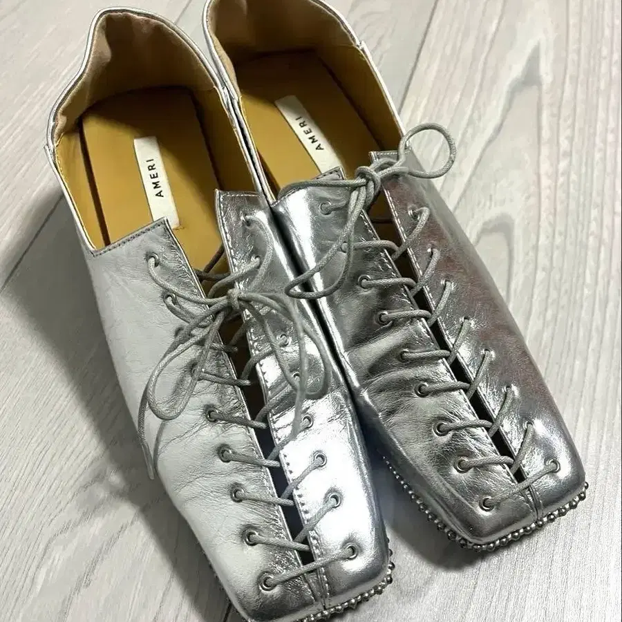 실버 레이스업 슈즈, 블록 힐 포함. - Color: Silver - Heel Type: Block heel 사이즈 M 1~2회만 사용 오른쪽 뒤꿈치에 약간의 주름이 있습니다. 이미지로 확인해 주세요. 방문해 주셔서 감사합니다.