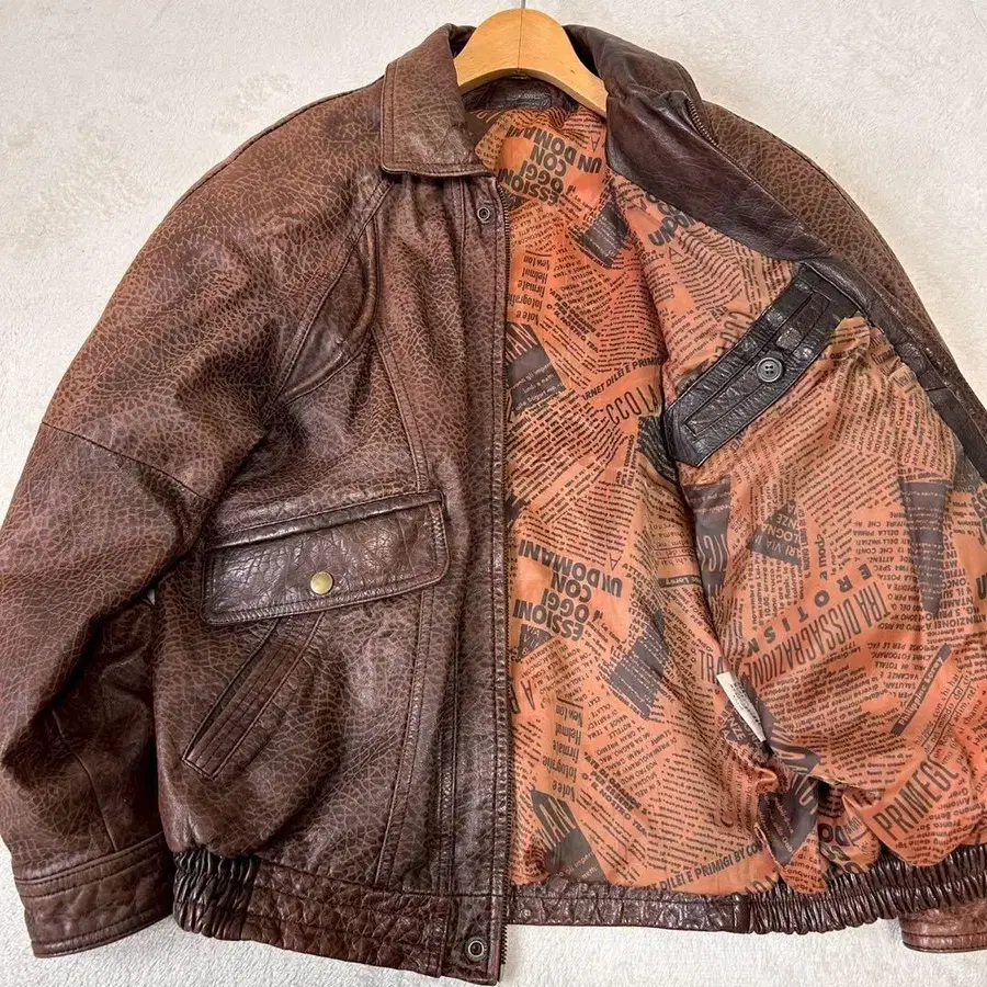 주름 패턴 안감 올 패턴 A-2 플라이트 자켓 빅 사이즈 가죽 자켓 L