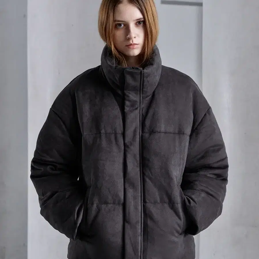[ CLEL ] 볼륨 하이넥 숏 패딩 자켓 그레이 계열 XS