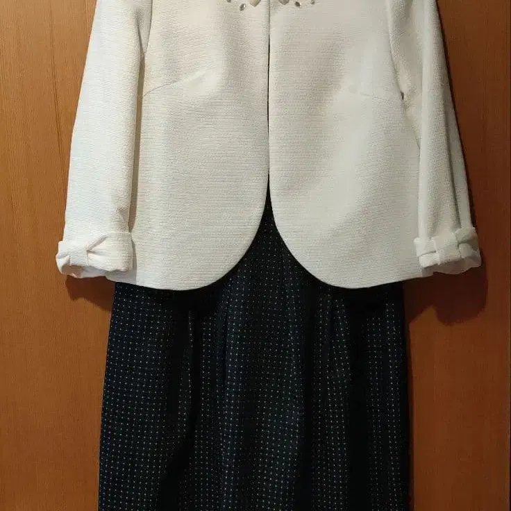 화이트 자켓, 네이비 자켓, 도트 무늬 원피스 9호