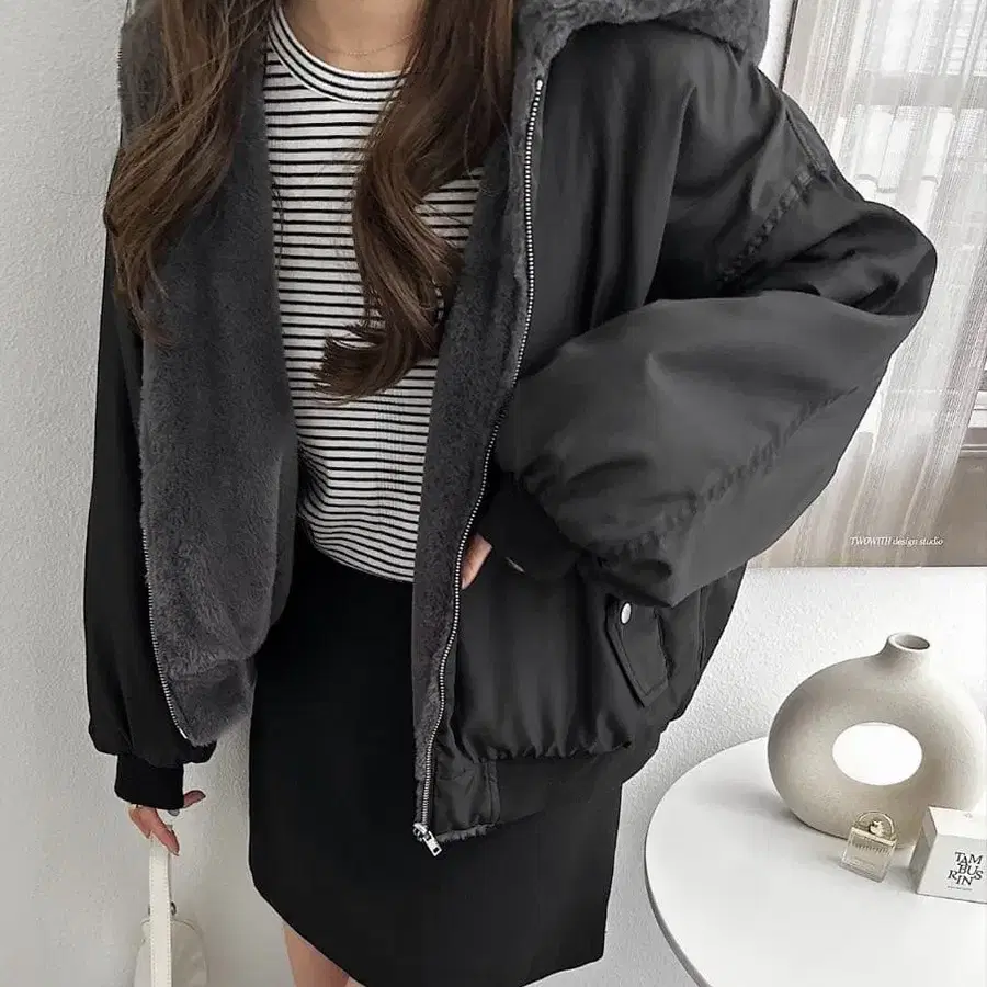 andme 리버서블 후드 부착 MA-1 블루종 퍼