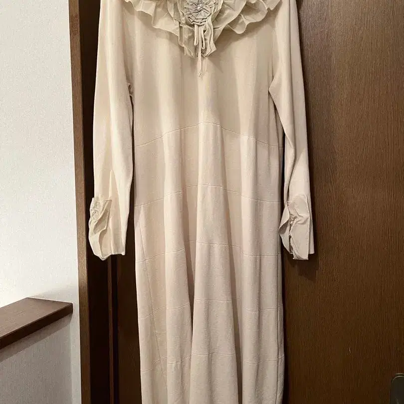 아이보리 프릴 긴팔 원피스