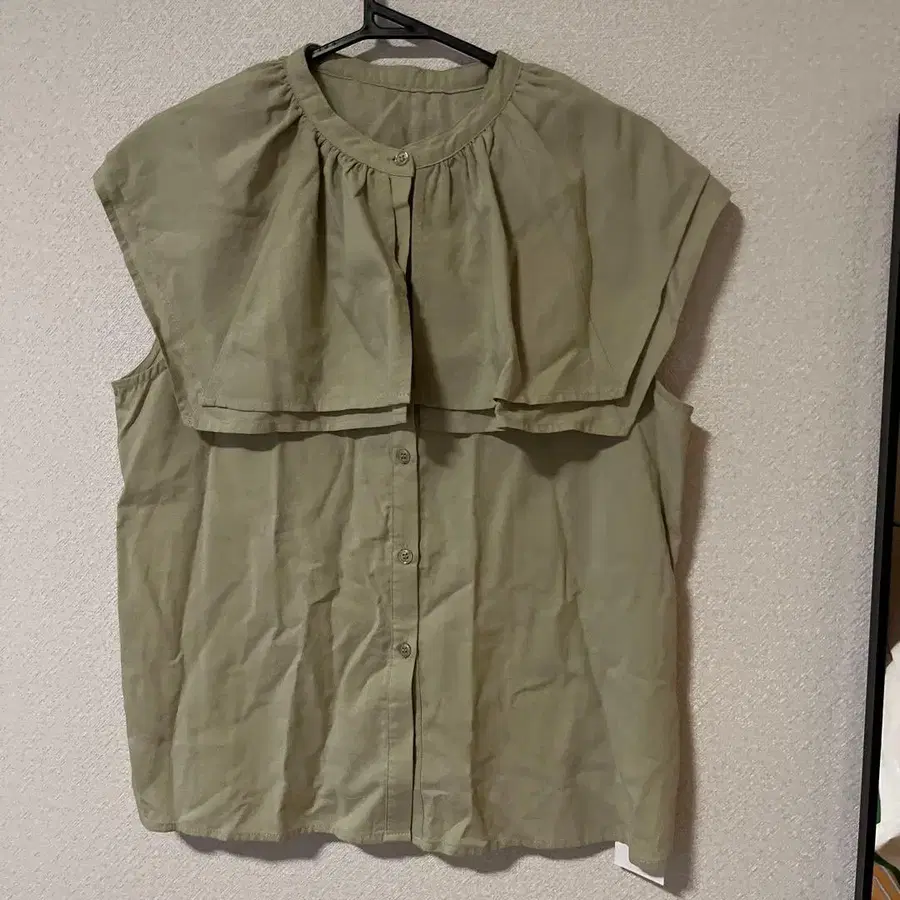 titivate 올리브 프릴 슬리브리스 셔츠