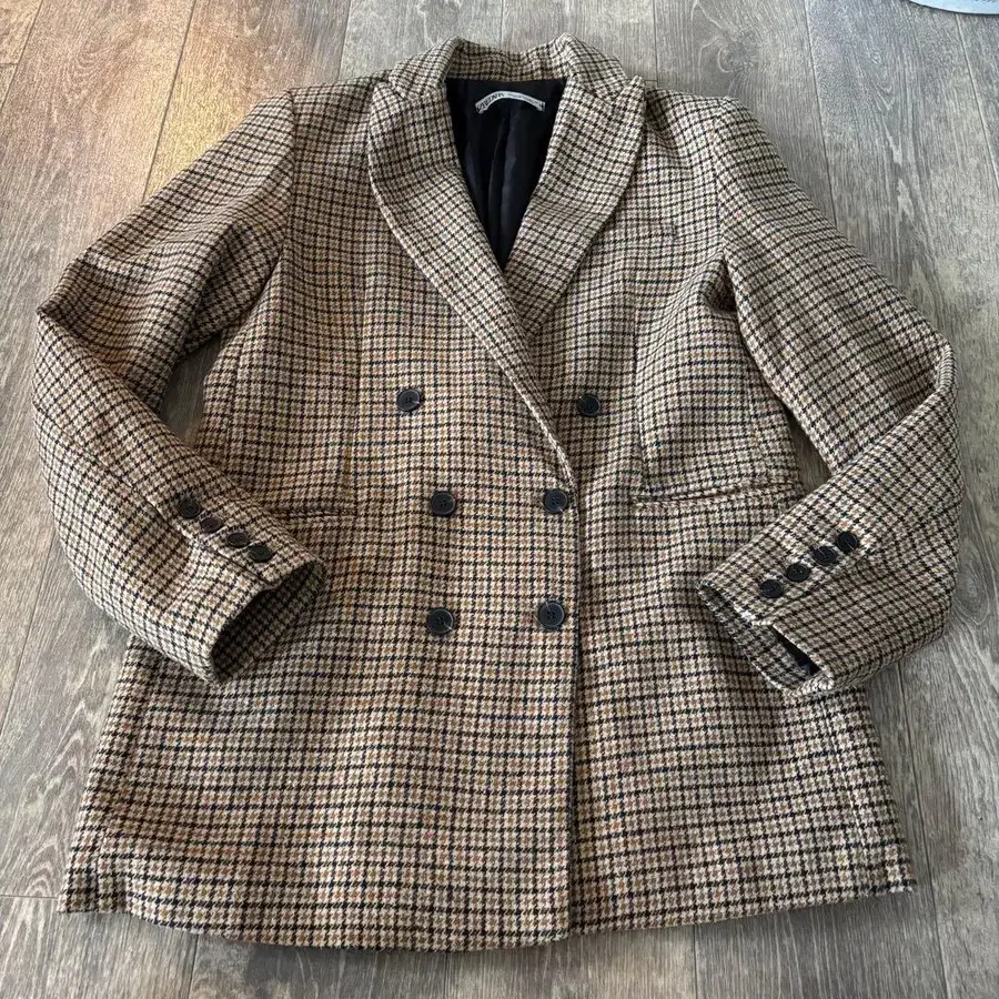 체크 무늬 더블 브레스트 자켓