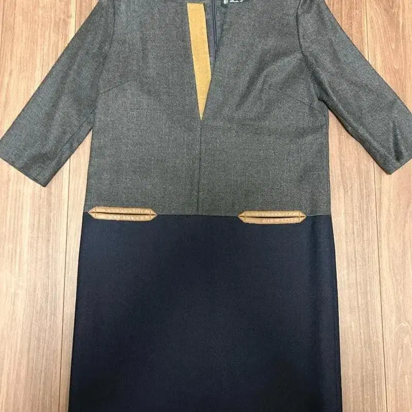 [ 자유구 ] 네이비 그레이 투톤 원피스