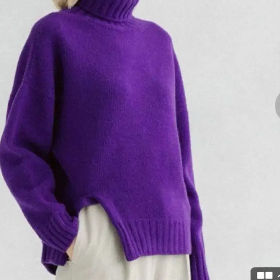 자동 번역되었어요. 원문보기블루 터틀넥 니트, 슬릿 디자인으로 스타일리시.
