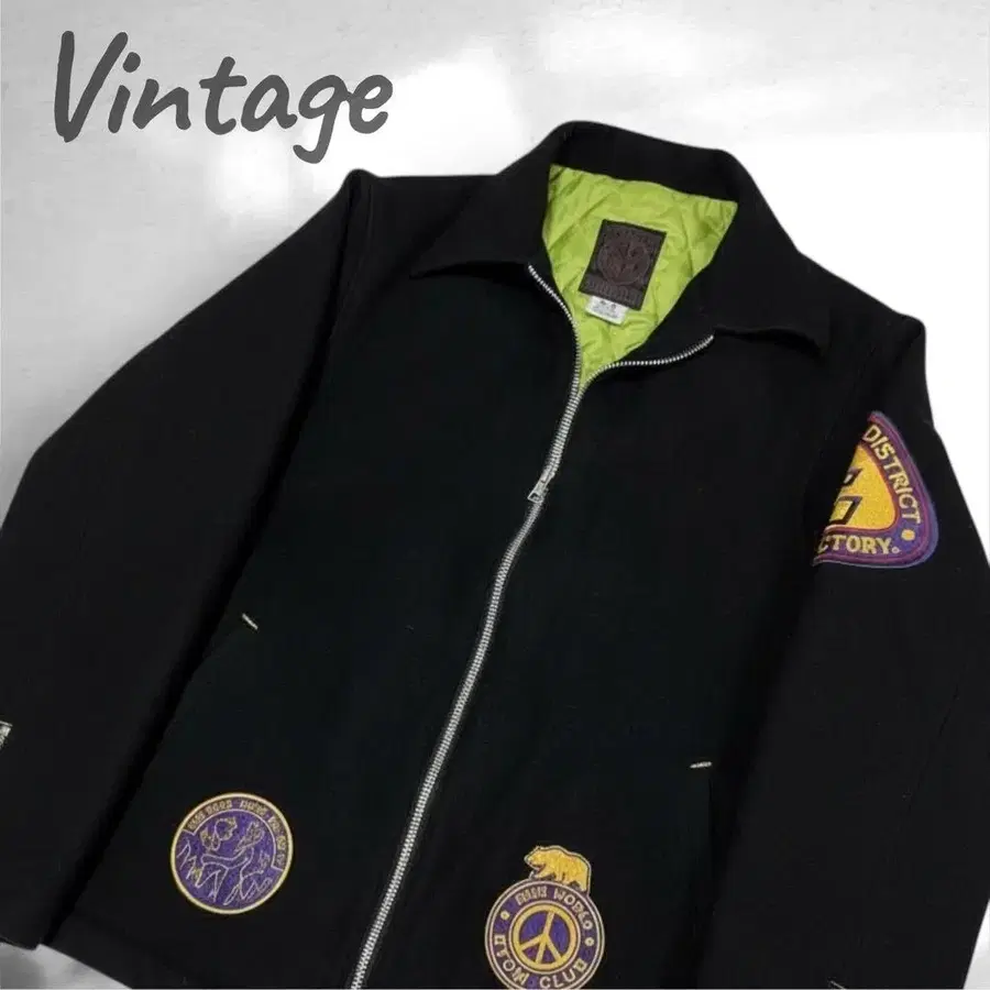 [레어] 바시티 자켓 블루종 자켓 블랙 그린 안감 자수 패치