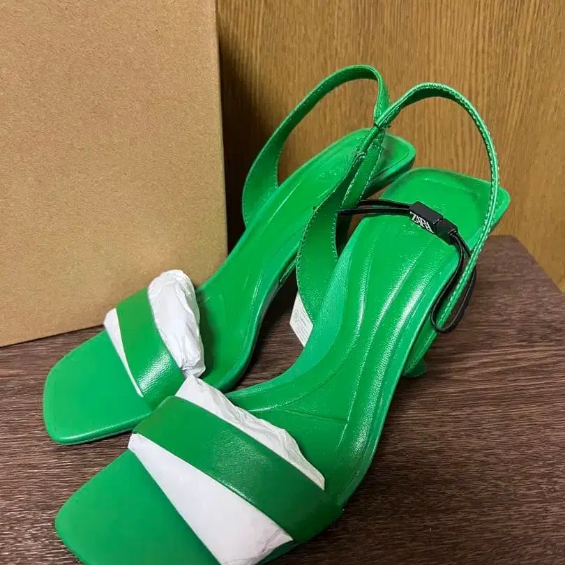 택 포함 새상품 ZARA 그린 가죽 하이힐 샌들