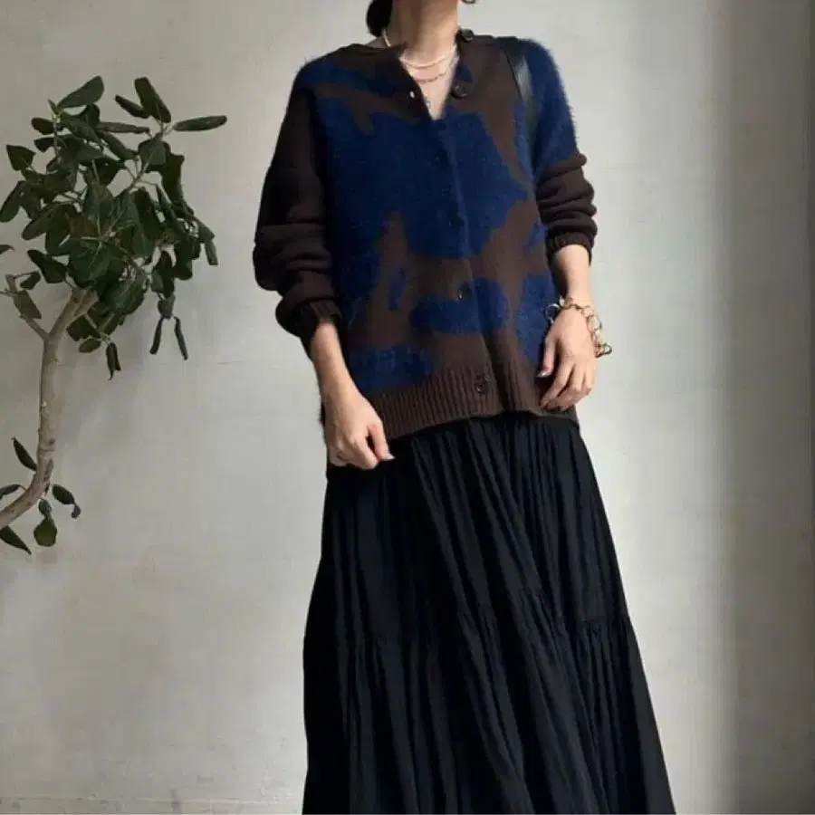 DouDou 아틀라스 니트 가디건 브라운 네이비 M