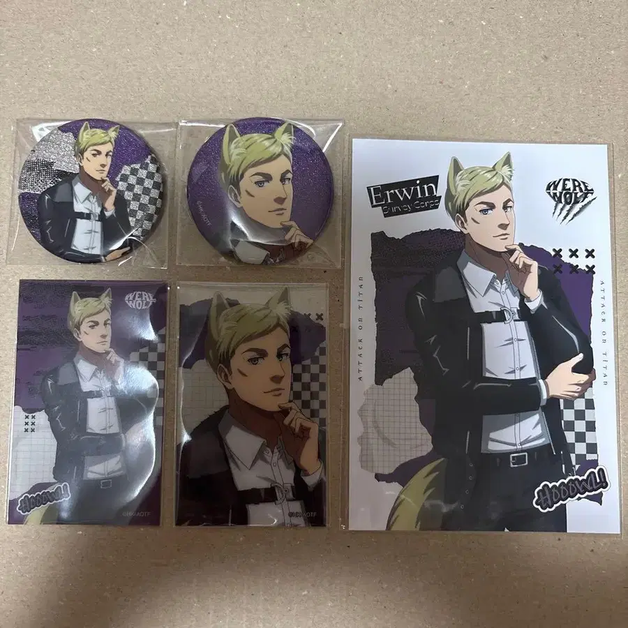 진격의 거인 엘빈 늑대인간 캔뱃지&클리어 카드&엽서 묶음 판매