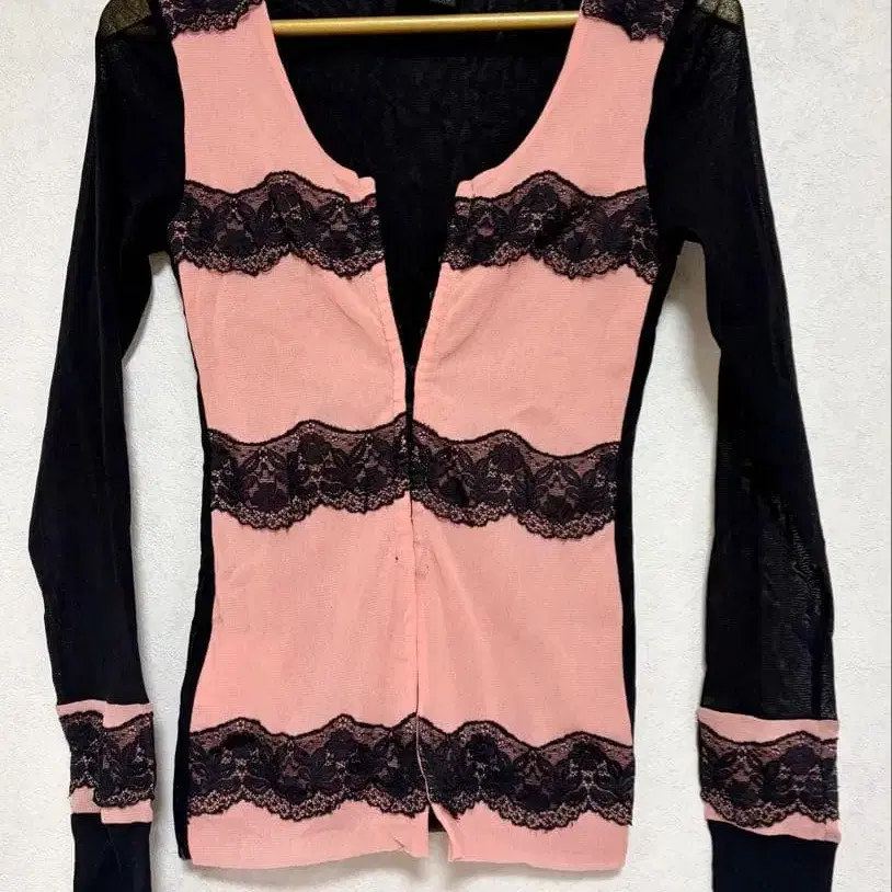 핑크와 블랙 레이스 긴팔 가디건