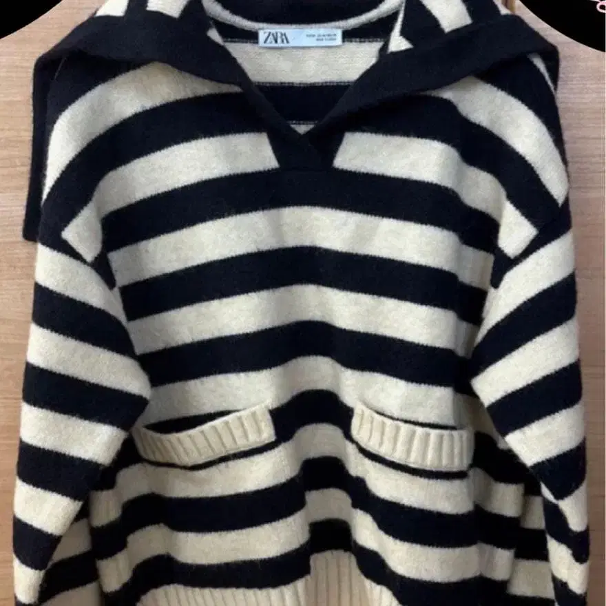 ZARA 블랙과 베이지 스트라이프 스웨터