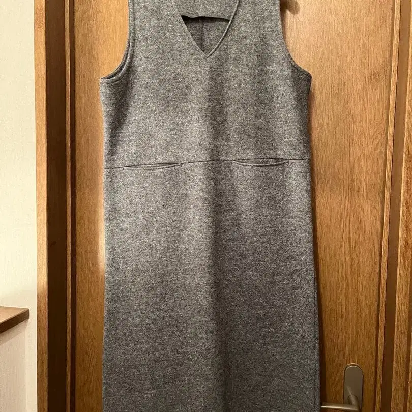 울 100% 그레이 슬리브리스 점퍼 스커트