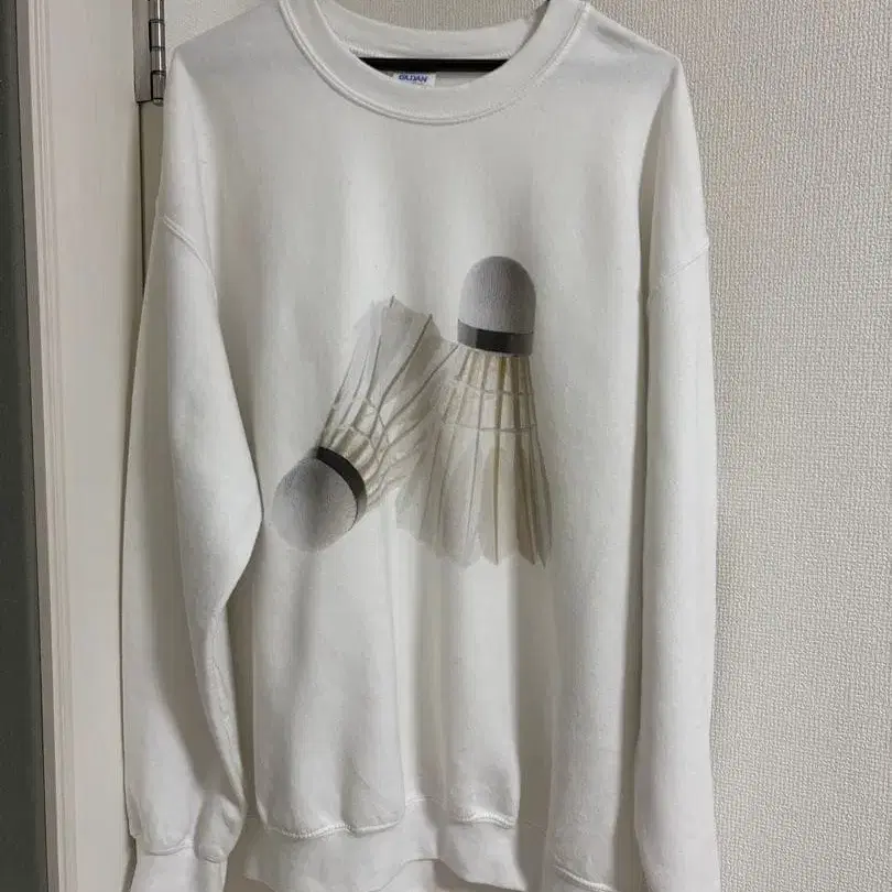 셔틀콕 프린트 화이트 맨투맨